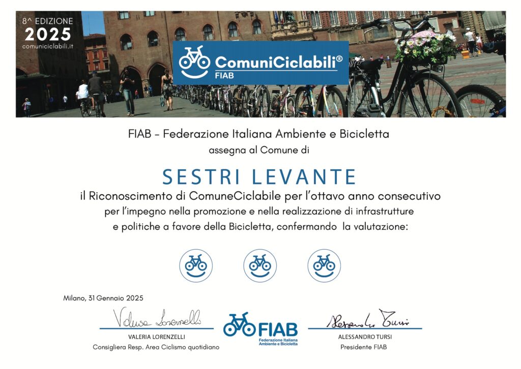 Il Comune di Sestri Levante ha aderito sin dalla prima edizione del progetto ottenendo tre “bike smile” su una scala di cinque.